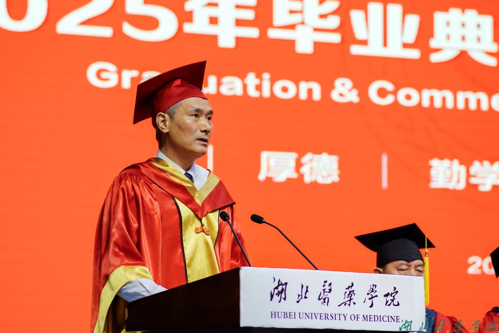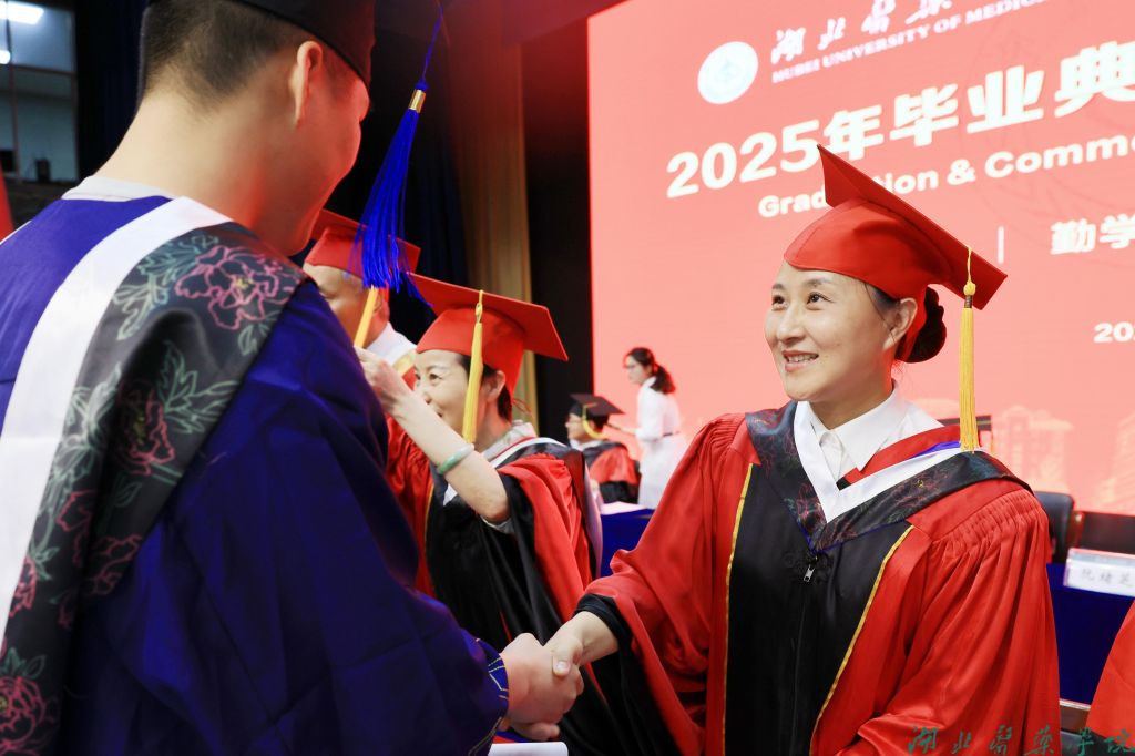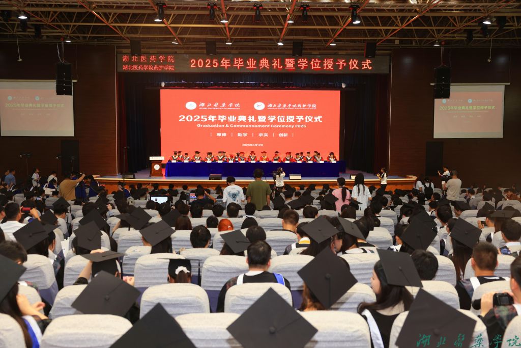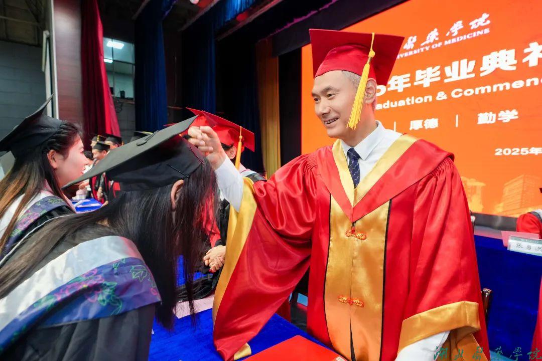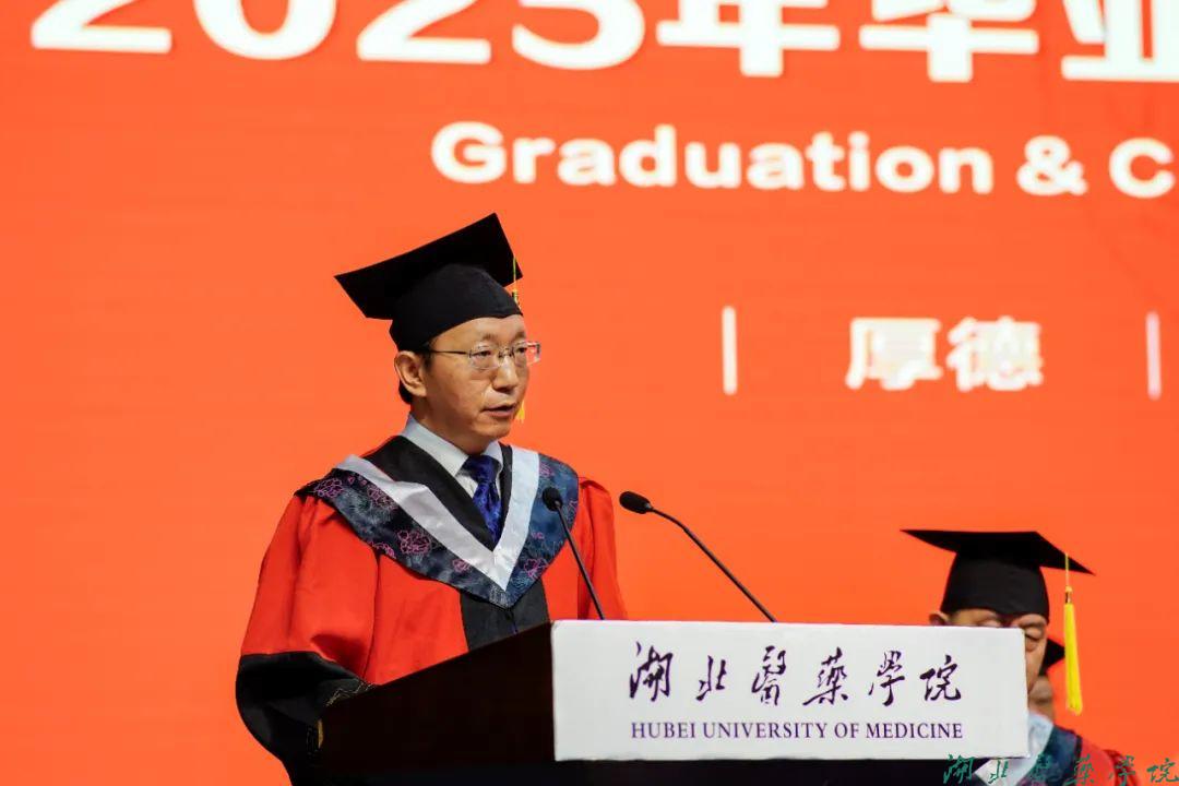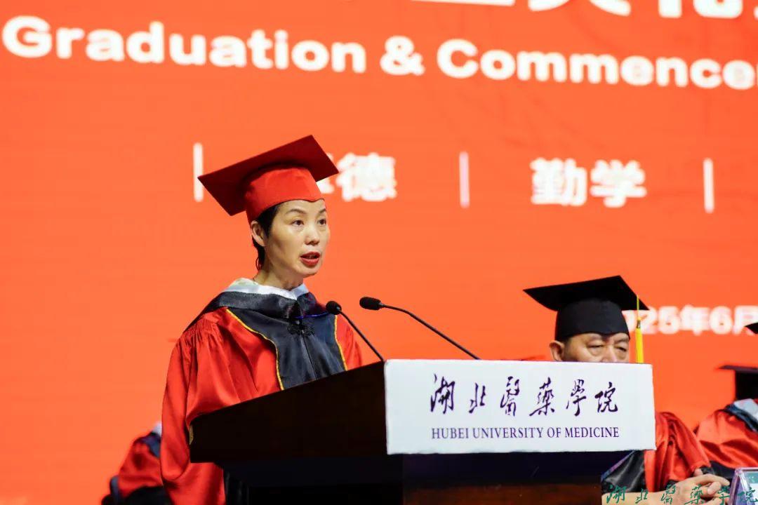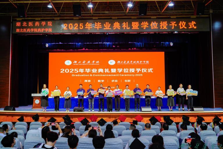 拔穗礼成,医路启航。6月12日上午8时30分,湖北医药学院、湖北医药学院药护学院2025年毕业典礼暨学位授予仪式在学子会馆三楼盛大举行。全体在家校领导、附属医院领导、校学位评定委员会全体委员,教职工代表、2025届毕业生及家长代表欢聚一堂,共同见证这一重要时刻。党委常委、副校长谭艳主持典礼。