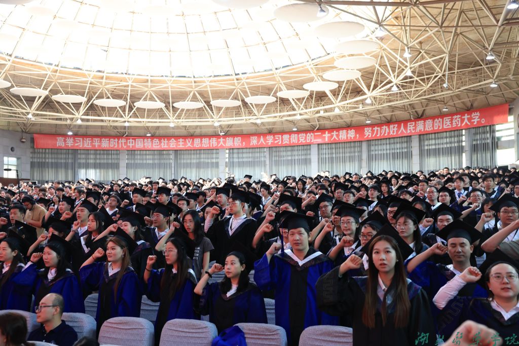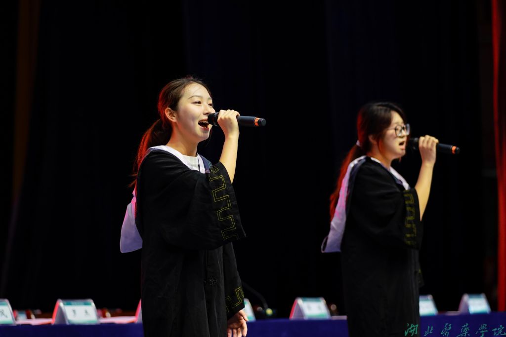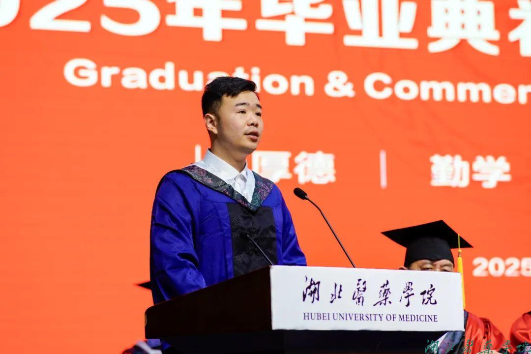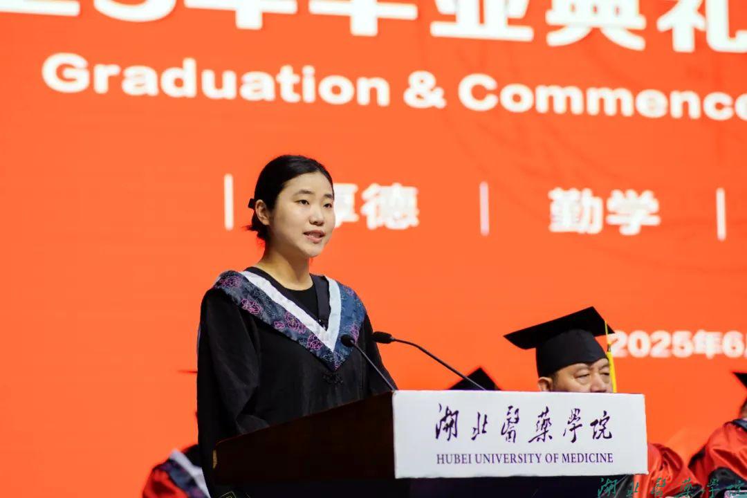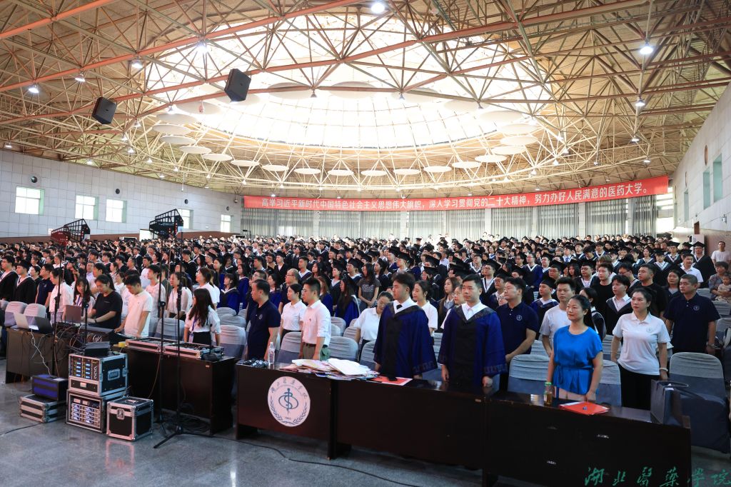 “健康所系,性命相托……”典礼最后,全体毕业生高举右拳,重温医学生誓词。新一代湖医药人的铿锵誓言铿锵有力,彰显了毕业生立志投身医学事业、守护人民健康的坚定决心。