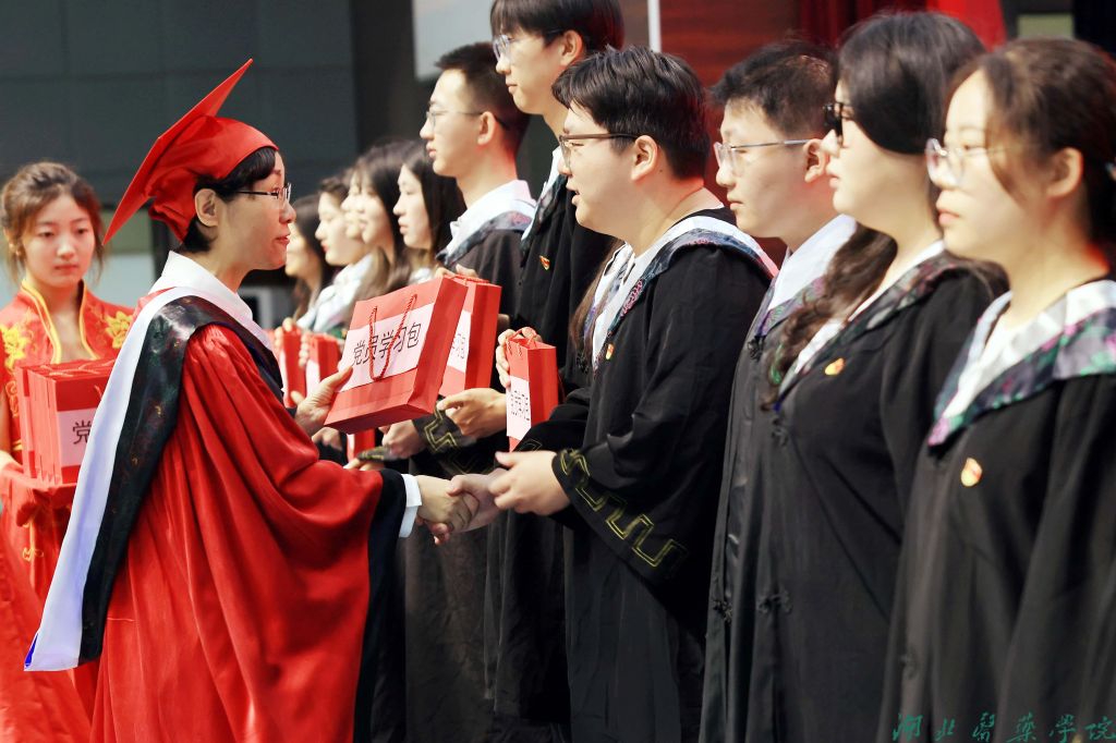 党委书记郑丹凤为毕业生党员赠送“党员学习包”,勉励他们在人生新征程上永葆党员本色,争做守护人民生命健康的卫士。