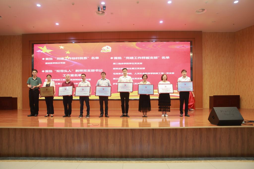 大会在庄严的国歌声中拉开帷幕。会议表彰了我校2019-2020年度的先进基层党组织、优秀共产党员、优秀党务工作者,并对首批“党建工作标杆院系”“党建工作样板支部”培育创建单位和首批“双带头”教师党支部书记工作室进行了授牌。
