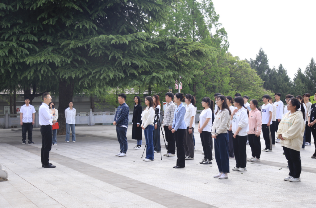 老师和学员们来到郧阳区革命烈士陵园,以主题团日的方式缅怀革命先烈。师生在烈士纪念碑前齐唱国歌、重温入团誓词,向烈士默哀、献花,郭俊讲《做新时代“守井人” 在强国复新伟大进程中挺膺担当》微团课,并一同参观烈士纪念馆。
