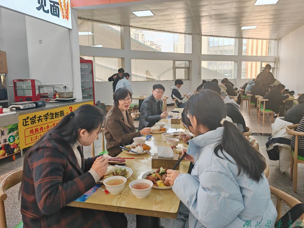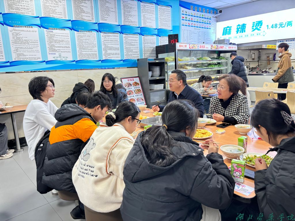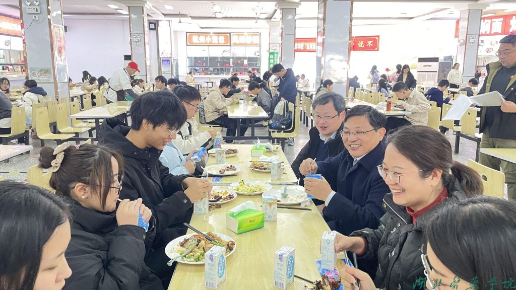 “家是哪里的?”“对学校的环境还适应吗?”“食堂的饭菜还合胃口吗?”用餐期间,校领导与学生们亲切交谈,听取同学们对饭菜口味、质量、价格的意见建议,了解同学们在校学习、生活情况,认真倾听,逐一解答同学们的问题,现场氛围热烈。
