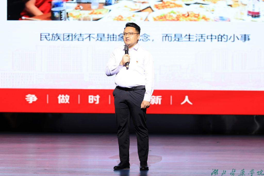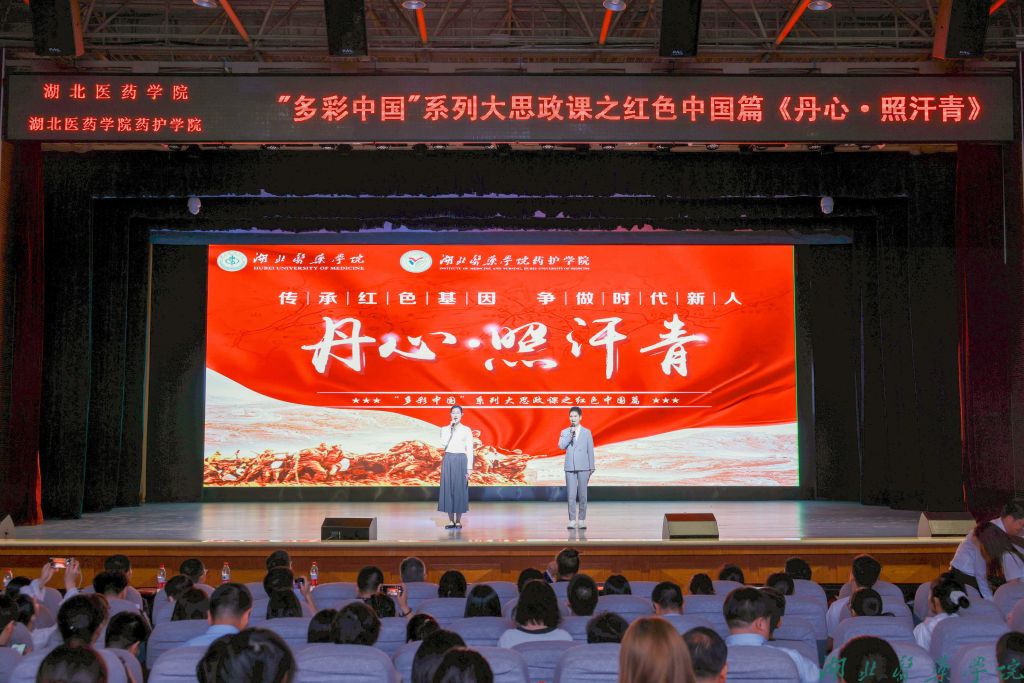 本网讯(文/何晓雪 黄松鹤 图/郑语晨 郑怡琳 农珧 胡锦江)4月21日晚7点,湖北医药学院“多彩中国”系列大思政课之红色中国篇《丹心·照汗青》在学子会馆三楼倾情开讲。包括十堰爱国主义教育基地讲解员、村书记、东风汽车公司党校金牌讲师、美国友人、一线医生、辅导员在内的各行各业人士登上我校大思政课讲台,为现场两千余名师生、线上三千余名观众讲述了一堂震撼心灵的爱国主义思政课,引导师生赓续红色基因、与时代和祖国同频共振。汉江流域大思政课教育联盟、湖北省大中小学思政课一体化成员单位、茅箭区流动新时代文明实践站、社区负责人及群众也观摩了此次活动。