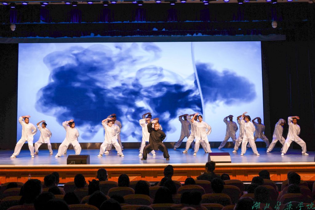除了鲜活生动的故事外,课堂还穿插了歌舞表演、武术、合唱等文艺展演,让大思政课更加有深度、有情怀、有温度。舞蹈《万泉河水清又清》表演者拿着斗笠与篮子相送娘子军,悠扬的音乐与动人的舞姿体现深深的军民情。歌舞《青春畅想》用欢快激扬的旋律和青春洋溢的舞蹈展现青年的激情澎湃。18名留学生演绎的武术《极韵武当》用刚柔并济的招式展现了和合天下、兼容并蓄的中华优秀传统文化理念。大学生和小学生合唱的《理想》唱出了对梦想的美好期待。最后,全场师生合唱《没有共产党就没有新中国》,用激昂的歌声表达传承红色精神、接续拼搏奋斗的坚定信念。