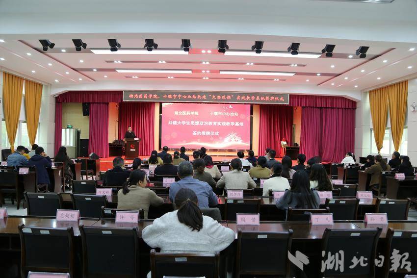湖北医药学院、市卫健委相关领导共同为“湖北医药学院大学生思想政治教育实践基地”揭牌。