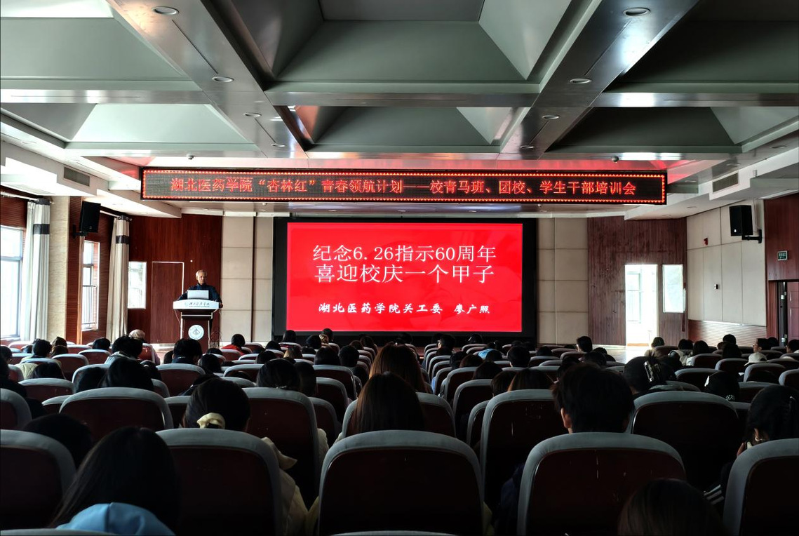 本网讯(通讯员 郭俊)11月18日中午12时30分,由校团委、校关工委与马克思主义学院关工委联合主办的校史专题讲座在八号楼五层多功能厅如期开讲。81岁高龄的离退休教授廖广照应邀为青年马克思主义者培养工程学员、团校学员及马克思主义学院学生代表作专题报告,此次专题讲座也是我校“杏林红”青春领航计划的重要活动内容。校团委书记邱爽主持本次活动,离退休工作处、校关工委、校团委相关负责人与300余名师生共同聆听了讲座。
