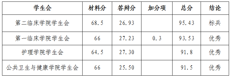 根据《湖北医药学院2025年度学院学生会考核细则》精神与要求,我校于2025年12月组织开展2025年度学院学生会年度考核工作,经过学院学生会自评、材料审核、现场汇报、综合评审与研讨等环节,现已得出结论。